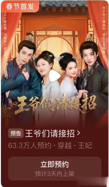 目前《王爷们请接招》在红果的预约量已经突破了63万,可谓是备受期待!